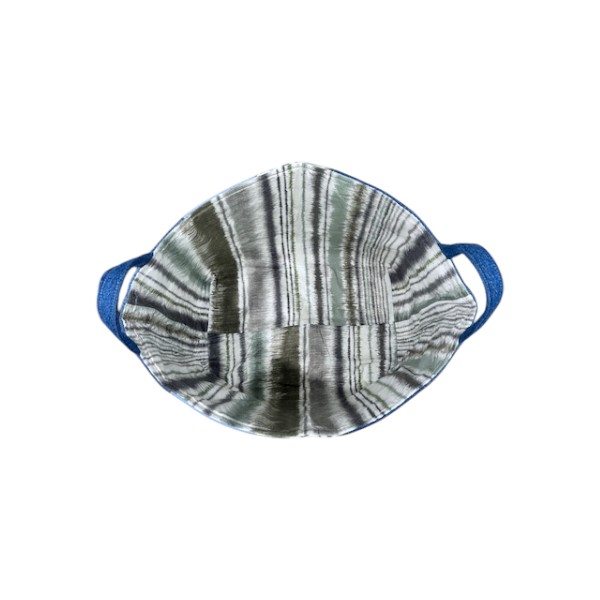 This basket is made from recycled denim and fabric and has interfacing and batting for stability.